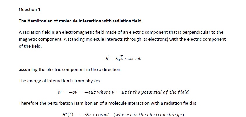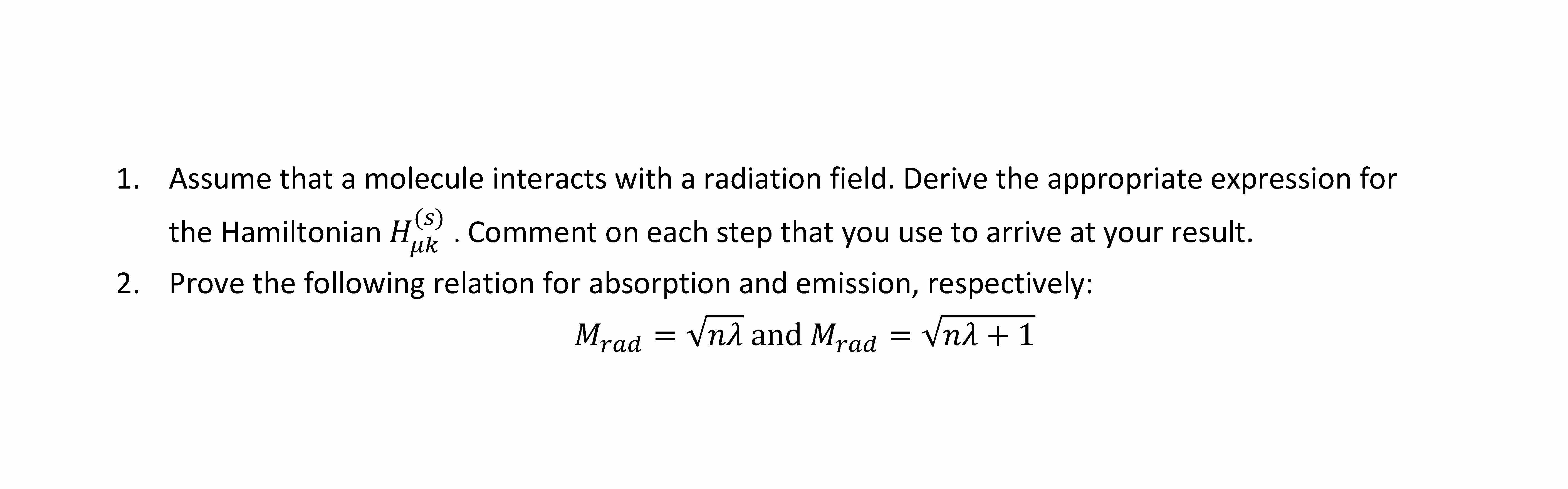 1. Assume that a molecule interacts with a radiation field. Derive...