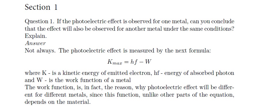 Section 1 Question 1. If the photoelectric effect is observed for...