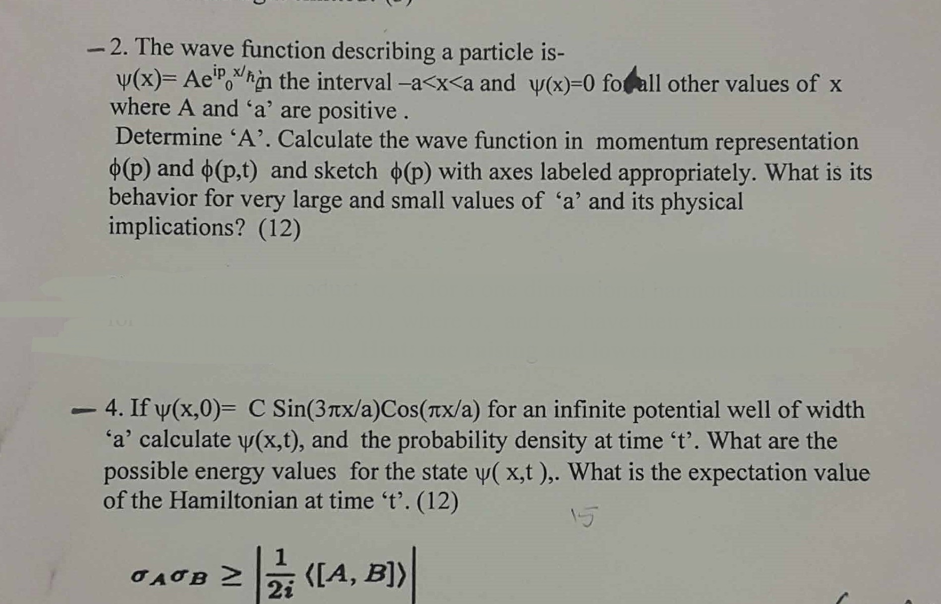 - -2. The wave function describing a particle is- (x)= = Ae¹P ...