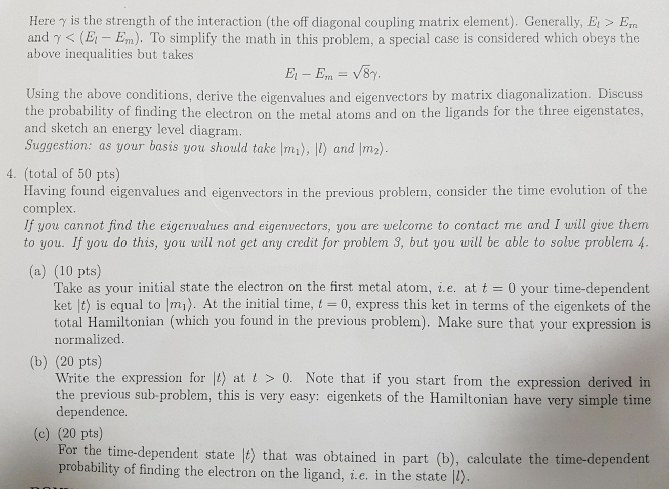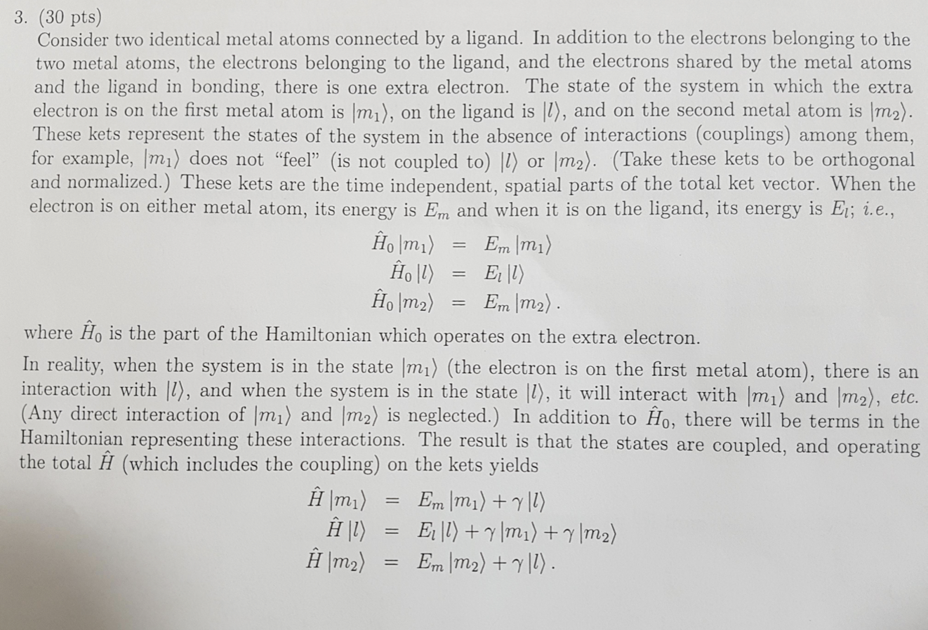 3. (30 pts) Consider two identical metal atoms connected by a liga...
