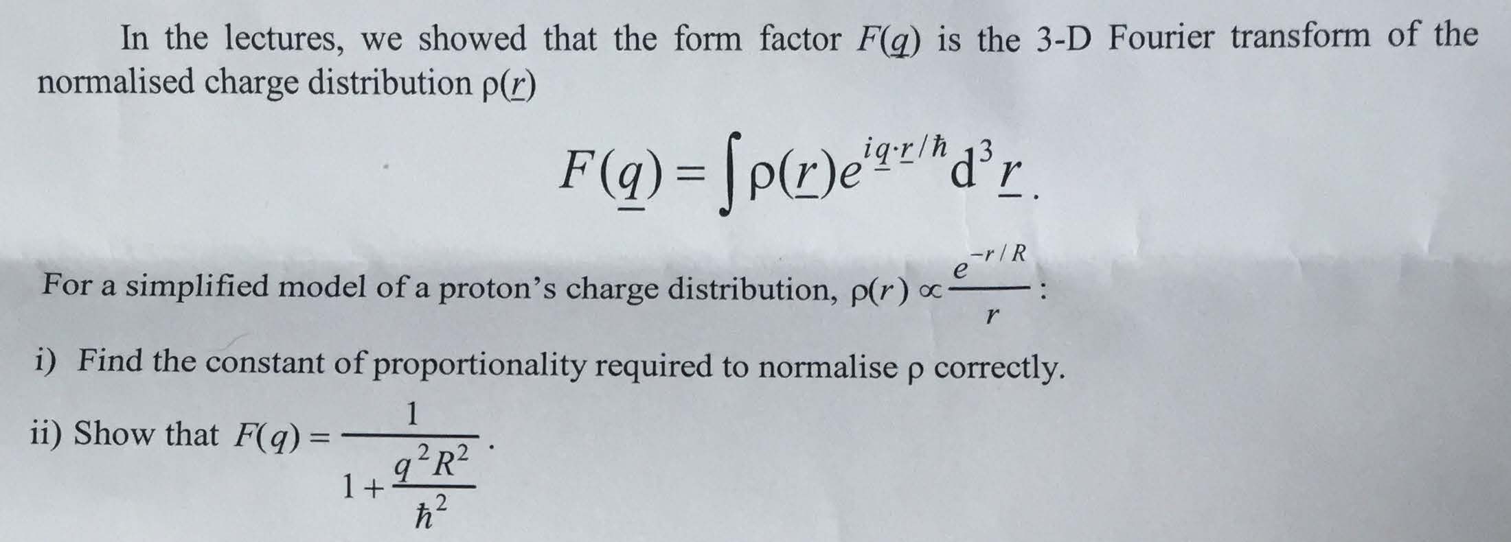 In the lectures, we showed that the form factor F(q) is the 3-D Fou...