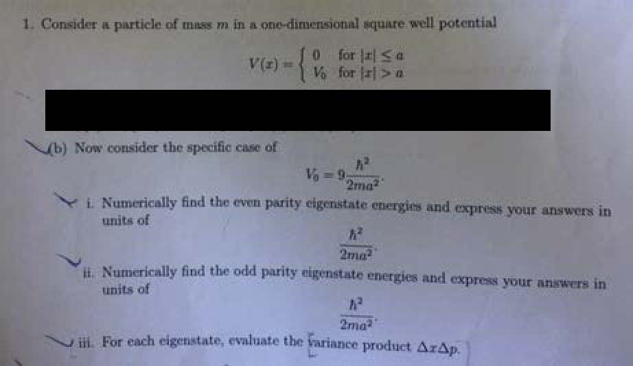 1. Consider a particle of mass m in a one-dimensional square well p...