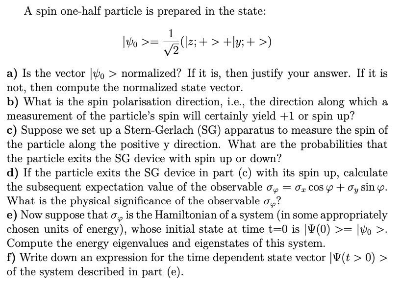 A spin one-half particle is prepared in the state: 1062= a) Is th...