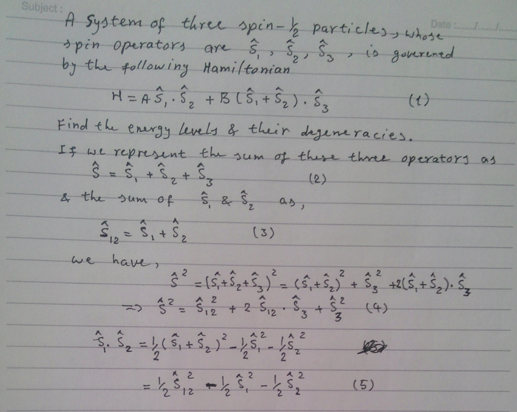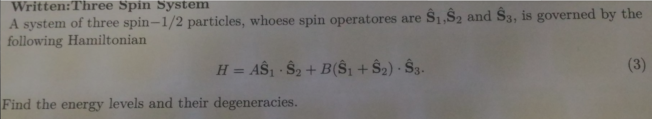Written: Three Spin System A system of three spin-1/2 particles, w...