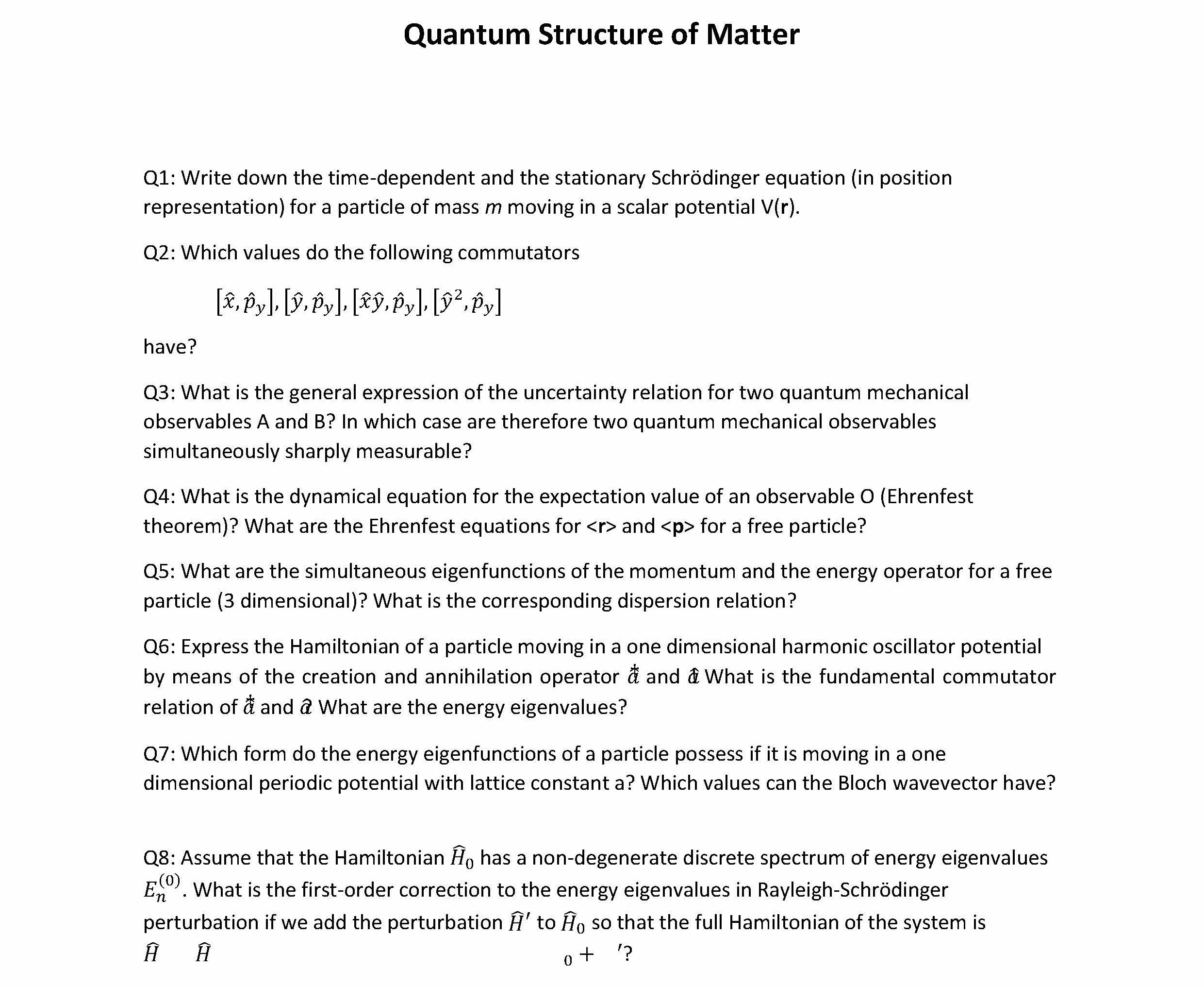 Quantum Structure of Matter Q1: Write downthe time-dependent and t...