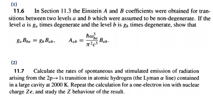 11.6 In Section 11.3 the Einstein A and B coefficients were obtain...