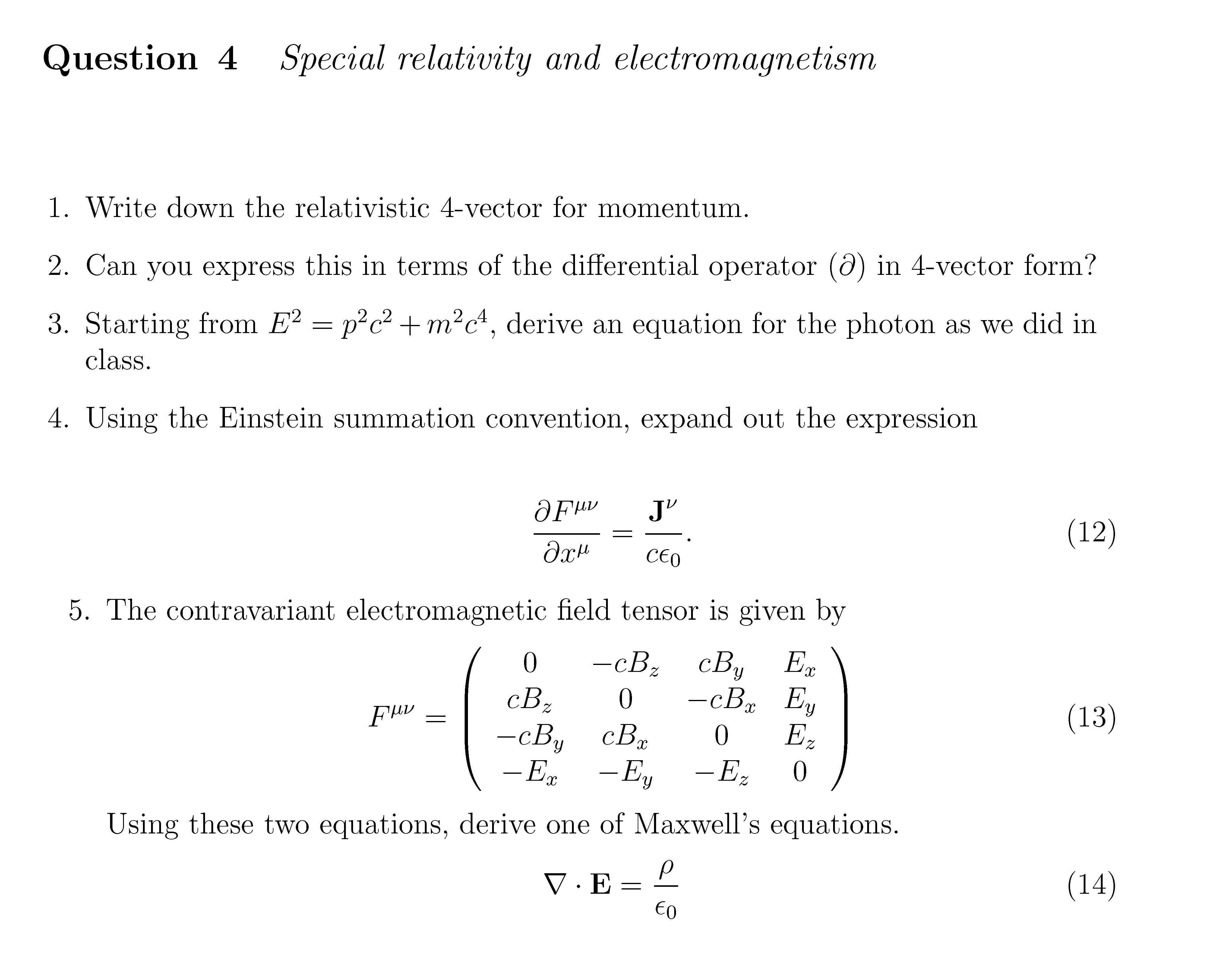 Question 4 Special relativity and electromagnetism 1. Write down ...