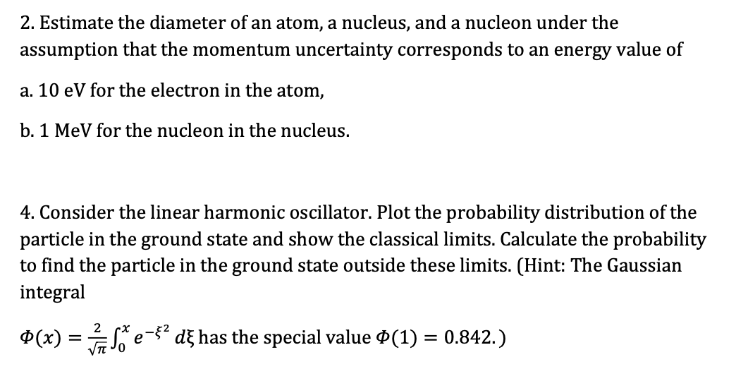 2. Estimate the diameter of an atom, a nucleus, and a nucleon under...
