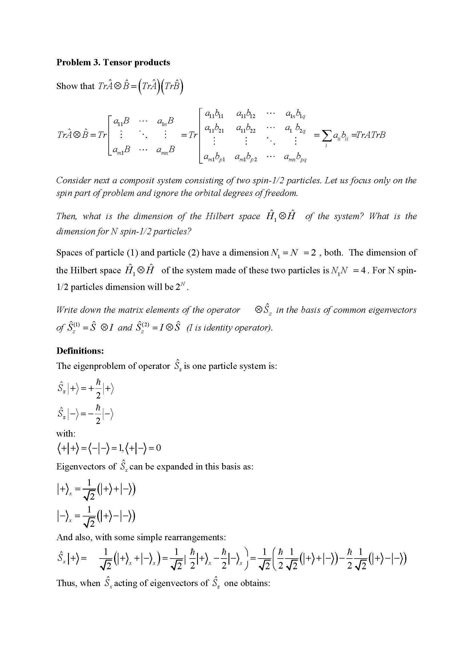 Problem 3 Tensor products Show that TrA 8 B = (TrA)(TrB). Consid...
