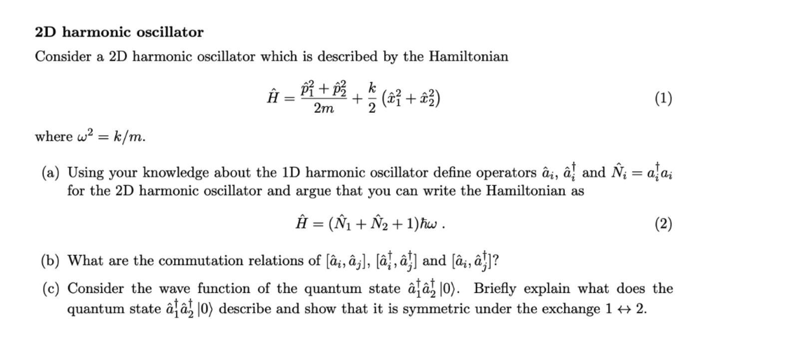2D harmonic oscillator Consider a 2D harmonic oscillator which is ...
