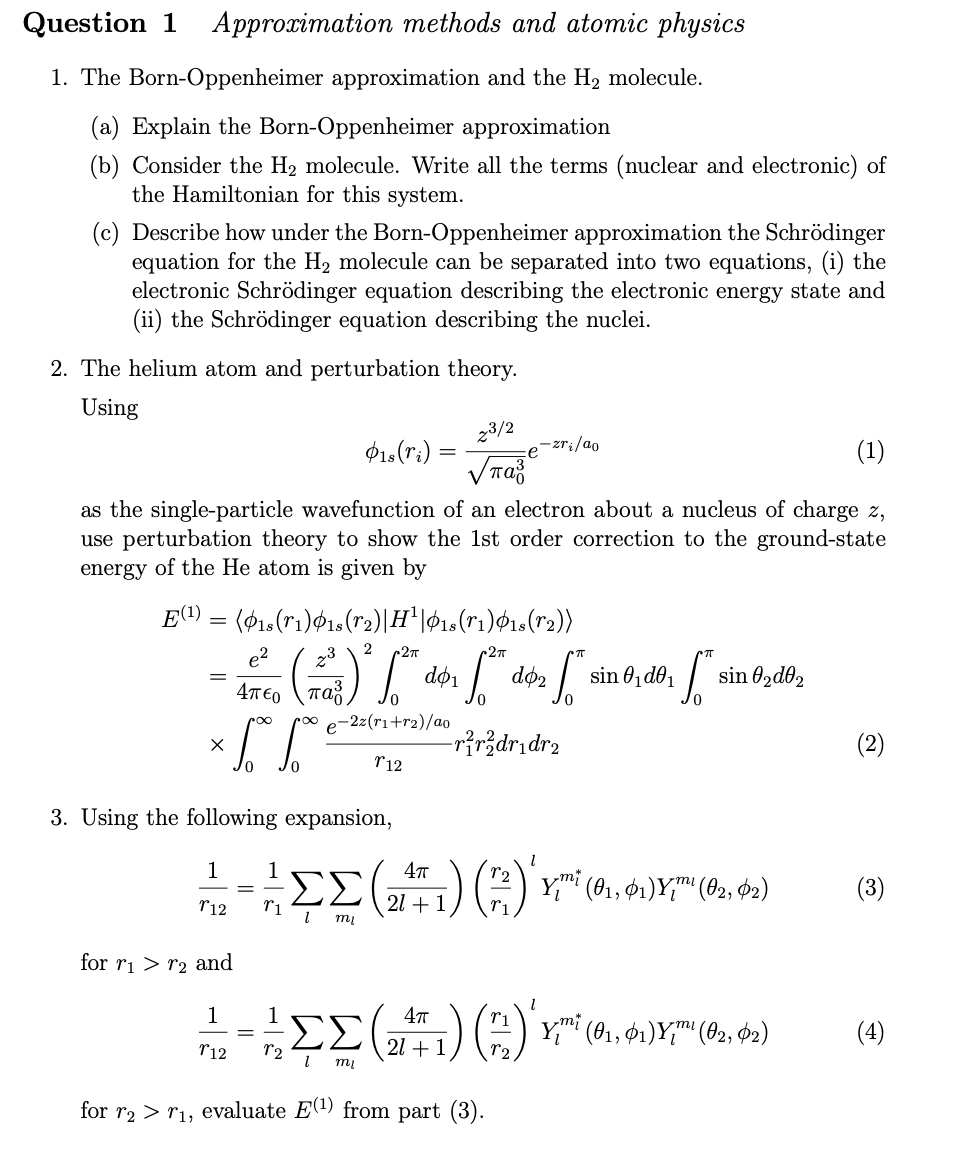 Question 1 Approximation methods and atomic physics 1. The Born-Op...