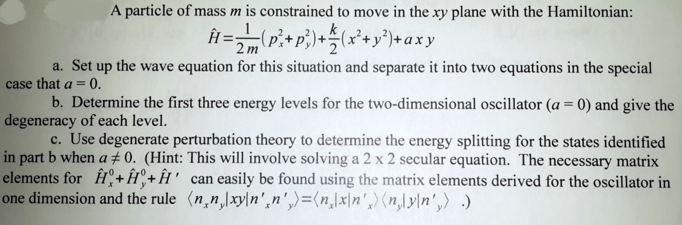 A particle of mass m is constrained to move in the xy plane with th...