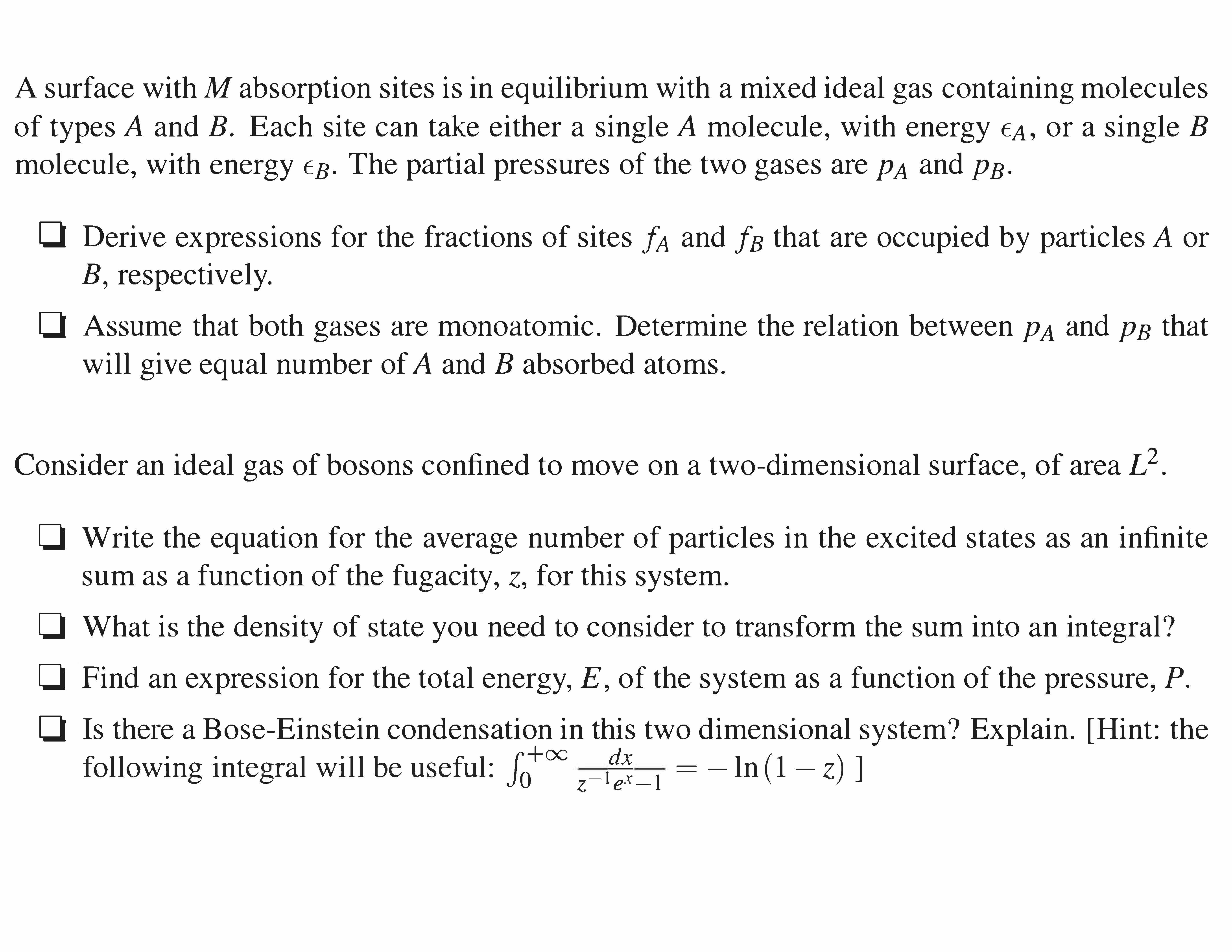 A surface with M absorption sites is in equilibriurn with a rnixed...