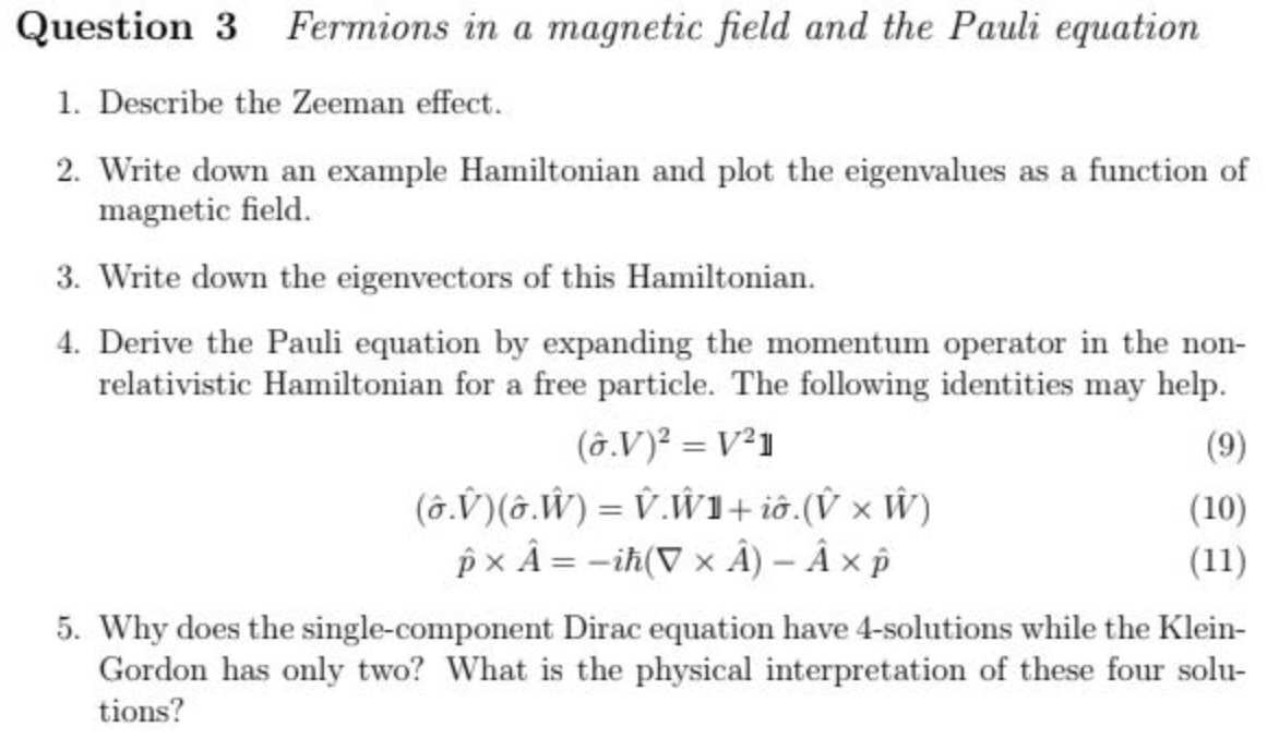Question 3 Fermions in a magnetic field and the Pauli equation 1. ...