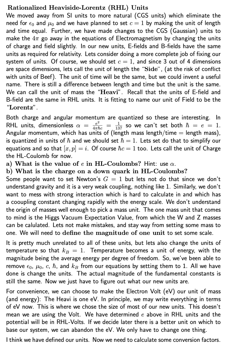 Rationalized Heaviside-Lorentz (RHL) Units We moved away from SI u...