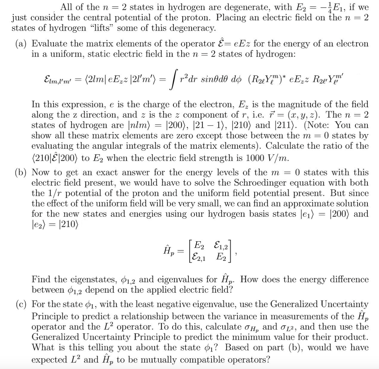 All of the n - 2 states in hydrogen are degenerate, with E2 = 4 1 E...