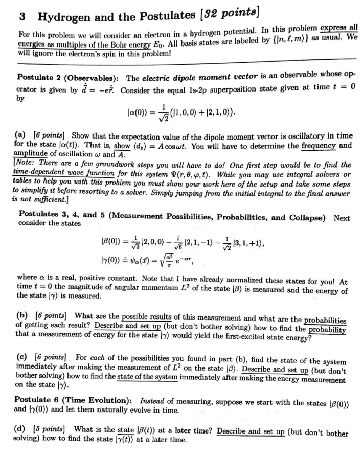 3 Hydrogen and the Postulates [32 points] energies For this as pro...