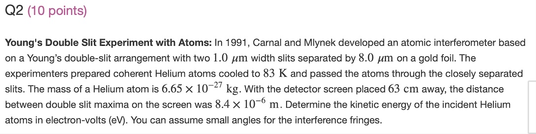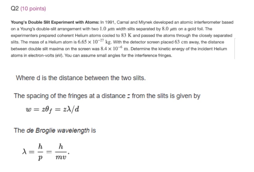 Q2 (10 points) Young's Double Slit Experiment with Atoms: In 1991,...