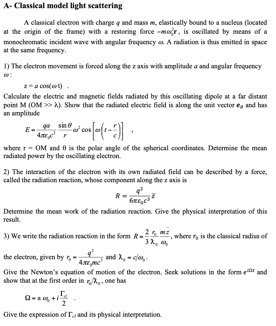 A- Classical model light scattering A classical electron with char...