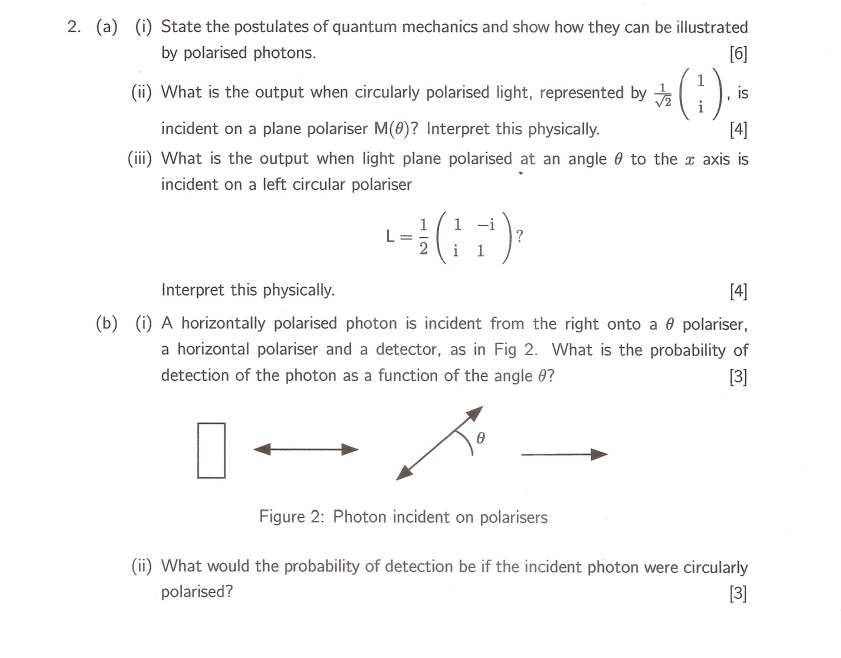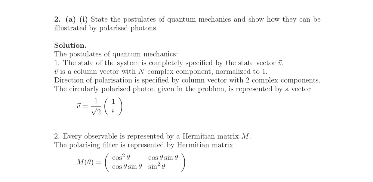 2. (a) (i) State the postulates of quantum mechanics and show how t...