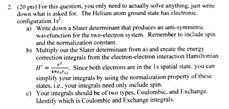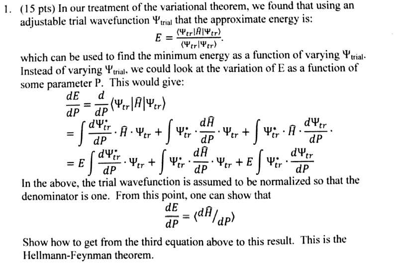 1. (15 pts) In our treatment of the variational theorem, we found t...