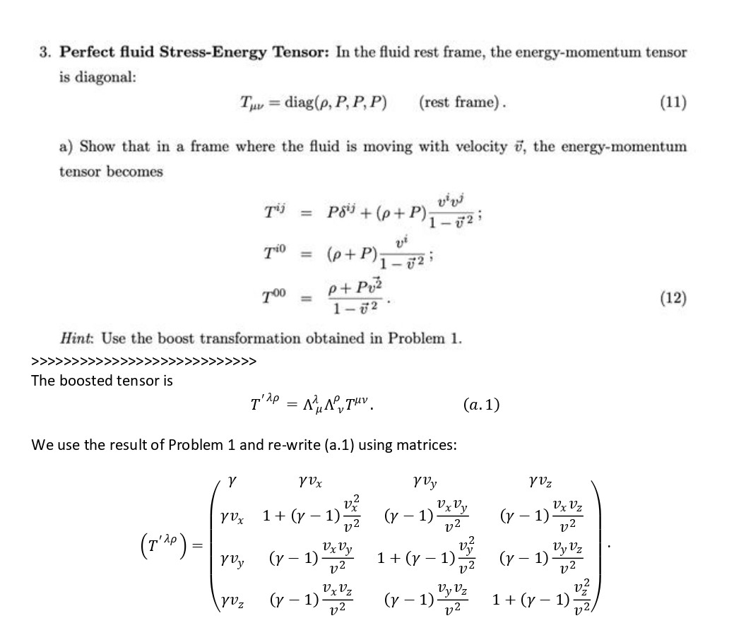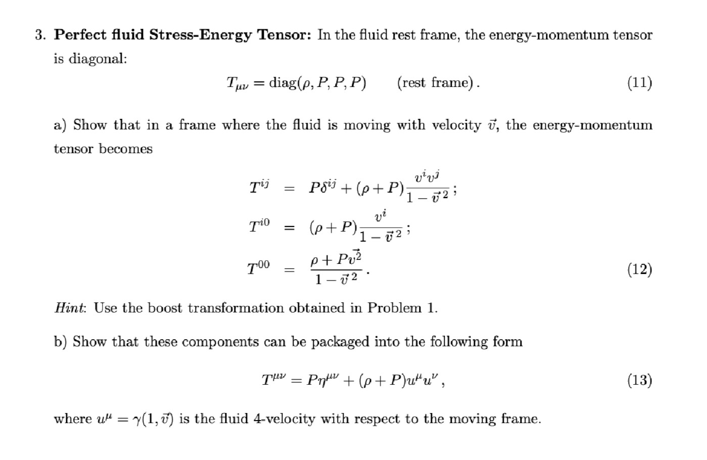 3. Perfect fluid Stress-Energy Tensor: In the fluid rest frame, the...