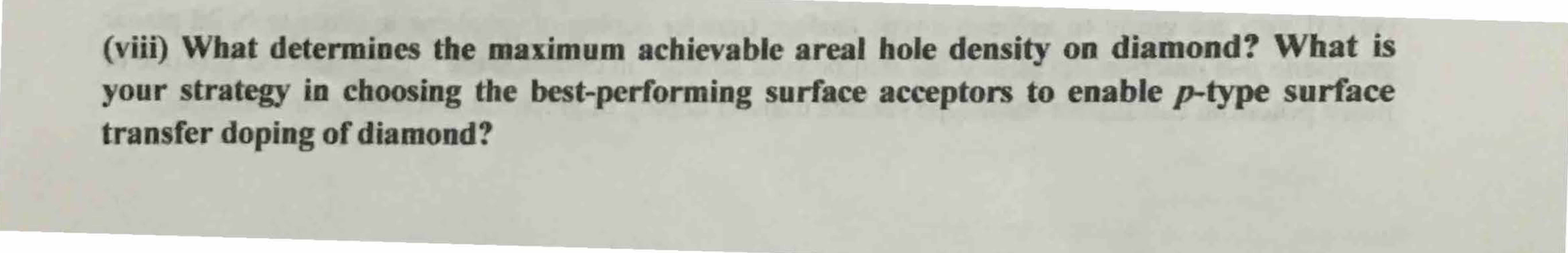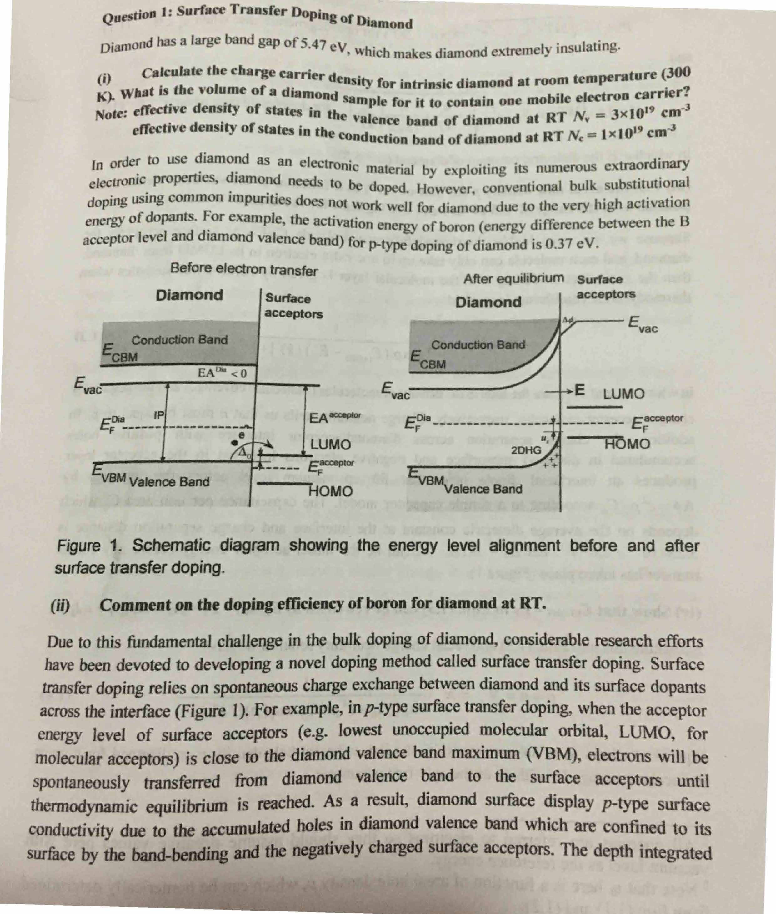 Question 1: Surface Transfer Doping of Diamond Diamond has large b...