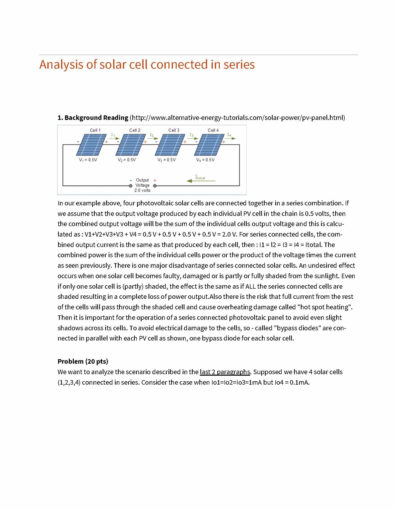 Analysis of solar cell connected in series 1. Background Reading (...