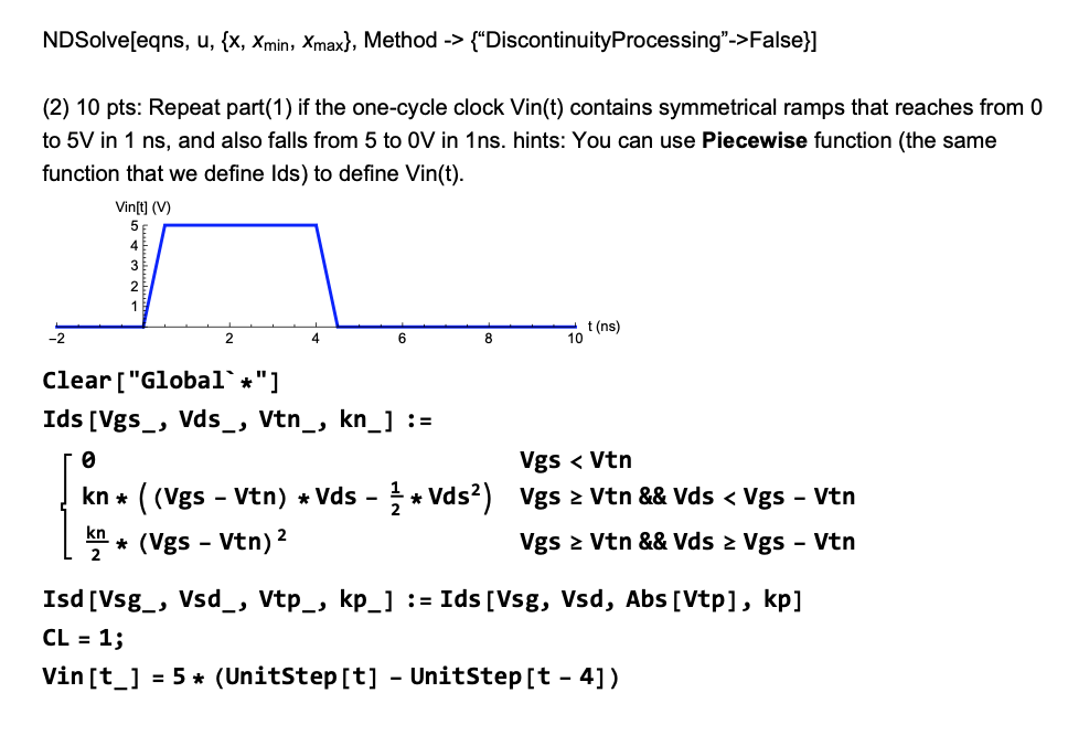Home Homework Library Physics Semiconductor Physics We want to find the output waveform of an inverter by solving the d...