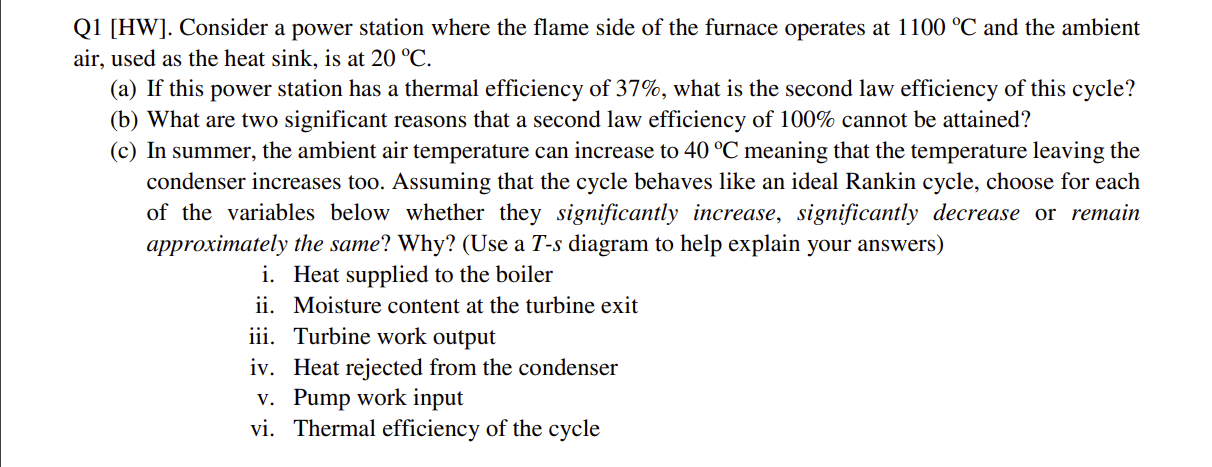 Q1 [HW]. Consider a power station where the flame side of the furna...