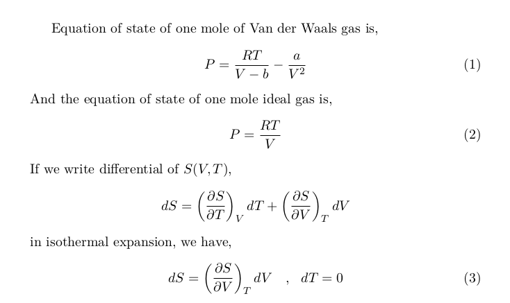 Evaluate ∆U and ∆S for isothermal expansion from volume V1 to v...