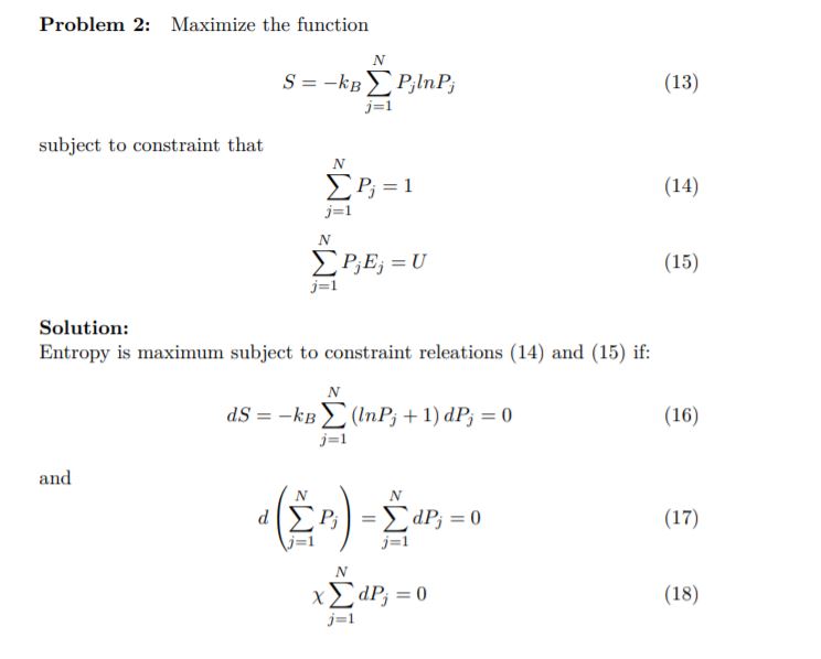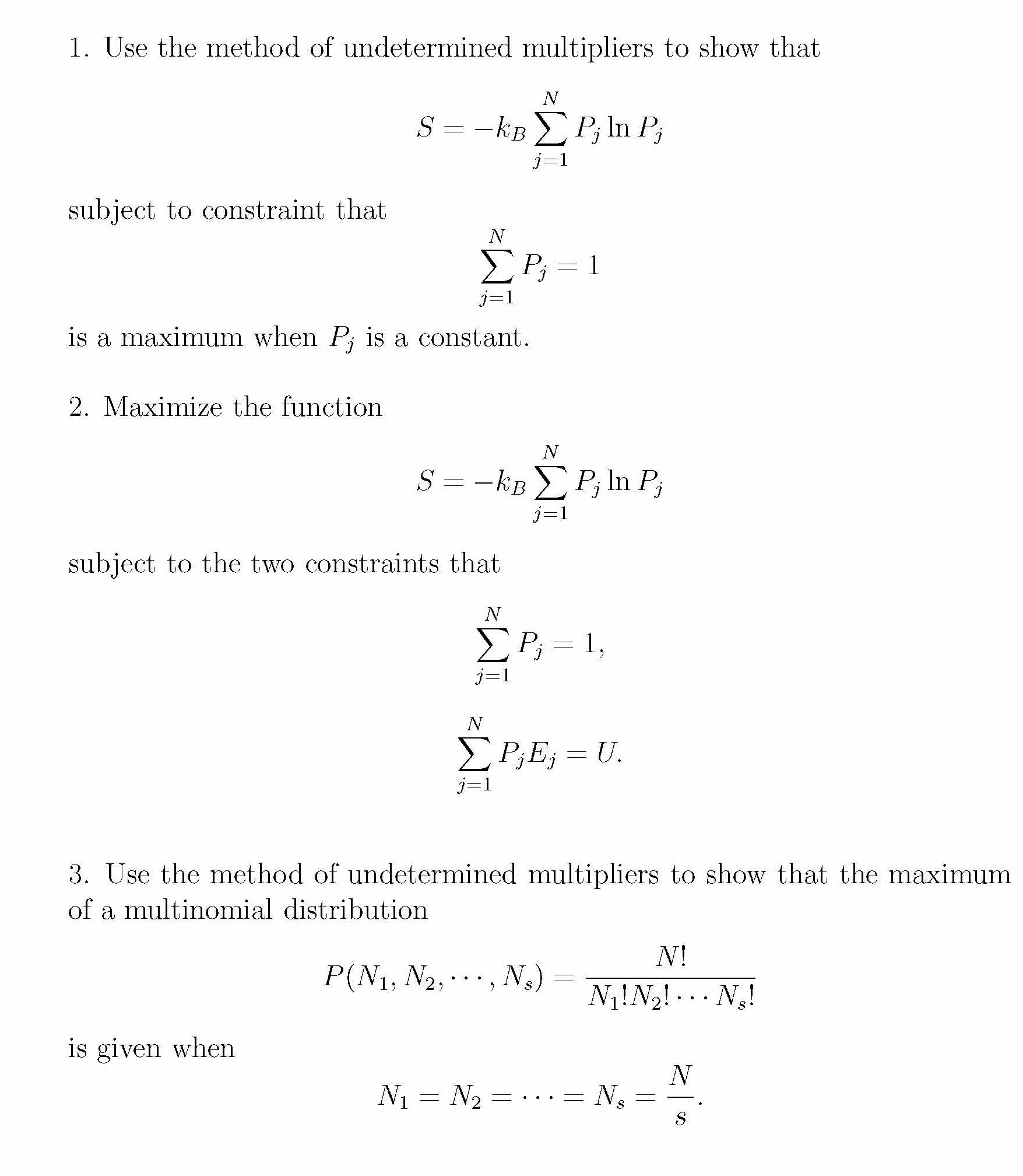 1. Use the method of undetermined multipliers to show that S = −...