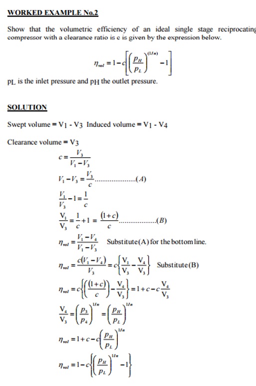 WORKED EXAMPLE No.2 Show that the volumetric efficiency of an idea...