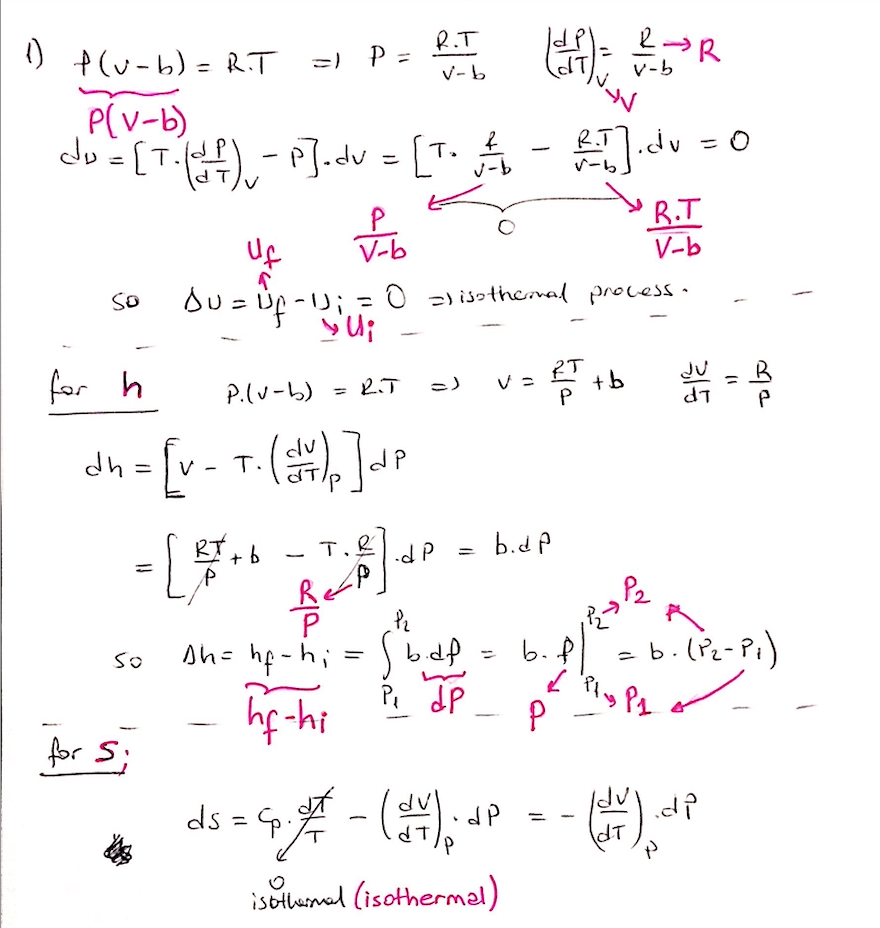 1. Write the formula's for changes in an isothermal process for u....