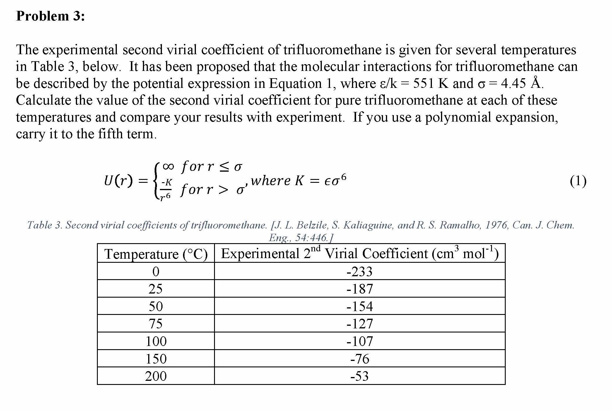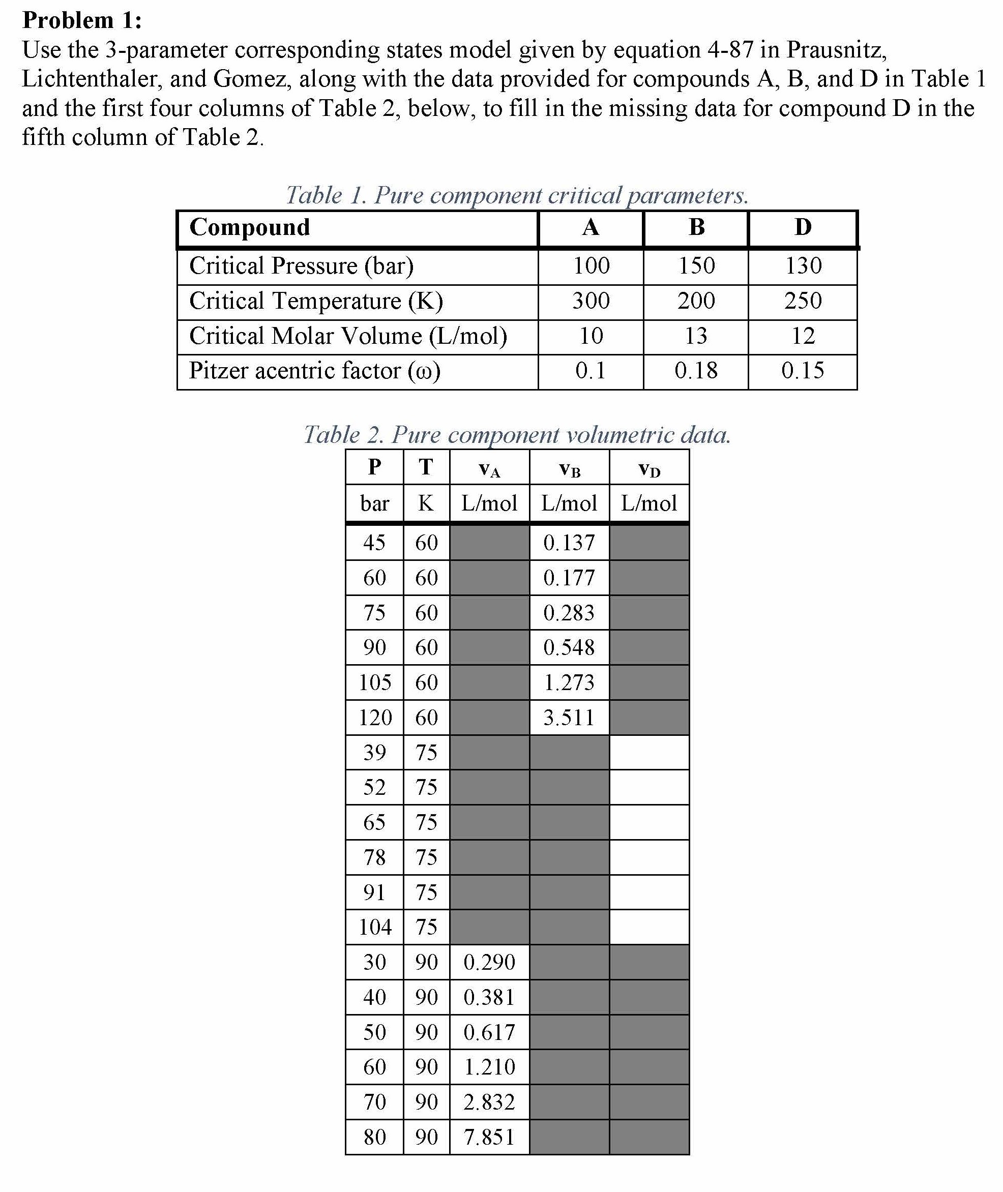 Problem 1: Use the 3-parameter corresponding states model given by...