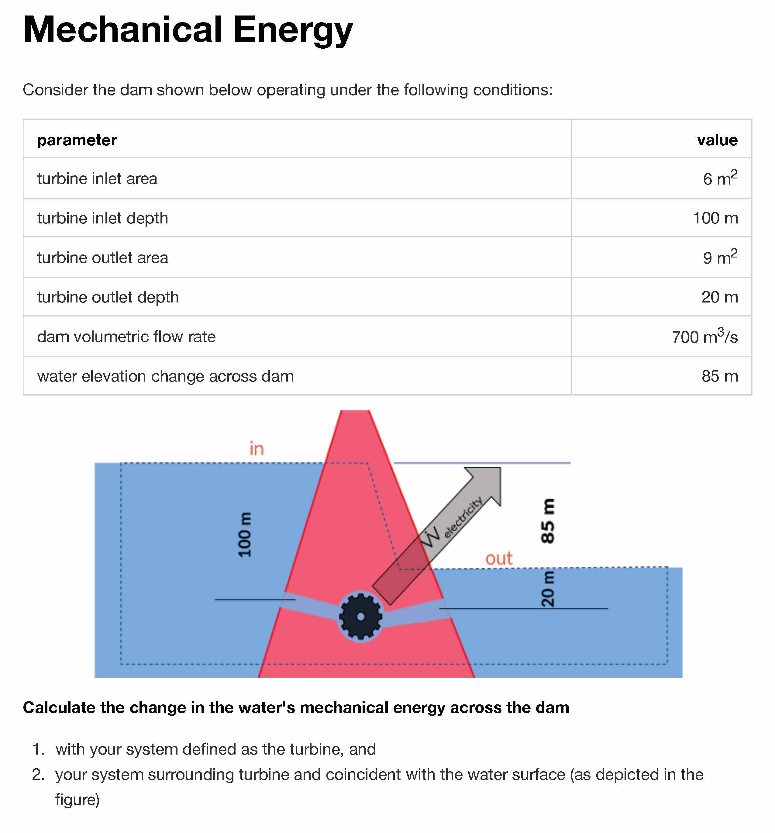 Mechanical Energy Consider the dam shown below operating under the...