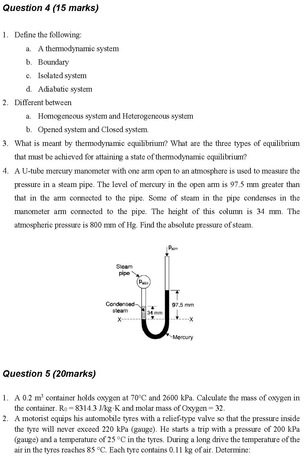 Question 4 (15 marks) 1. Define the following: a. A thermodynamic...