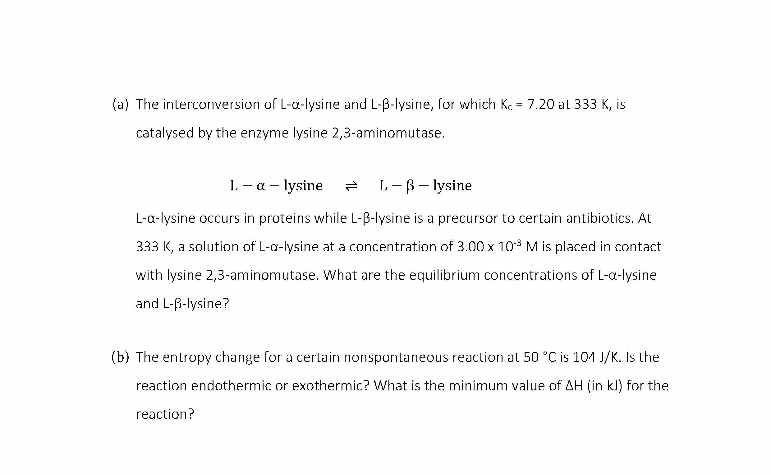(a) The interconversion of L-α-lysine and L-β-lysine, for which K...