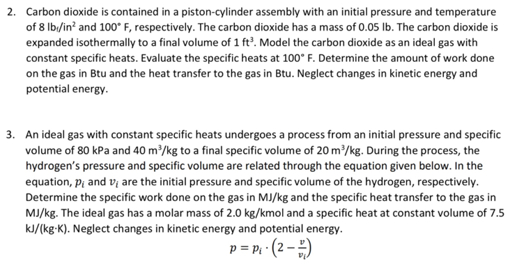2. Carbon dioxide is contained in a piston-cylinder assembly with...