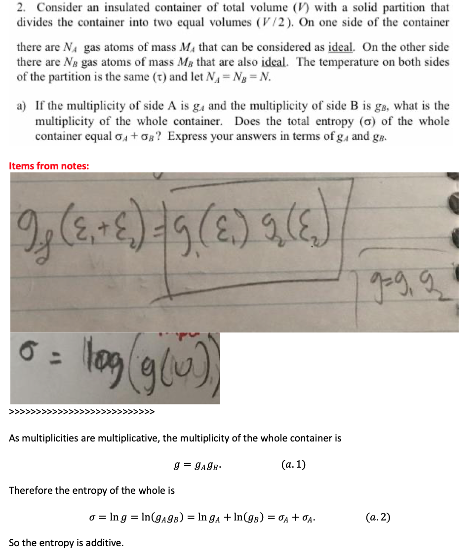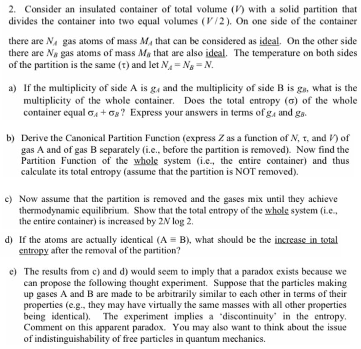2. Consider an insulated container of total volume (V) with a solid...