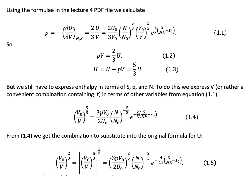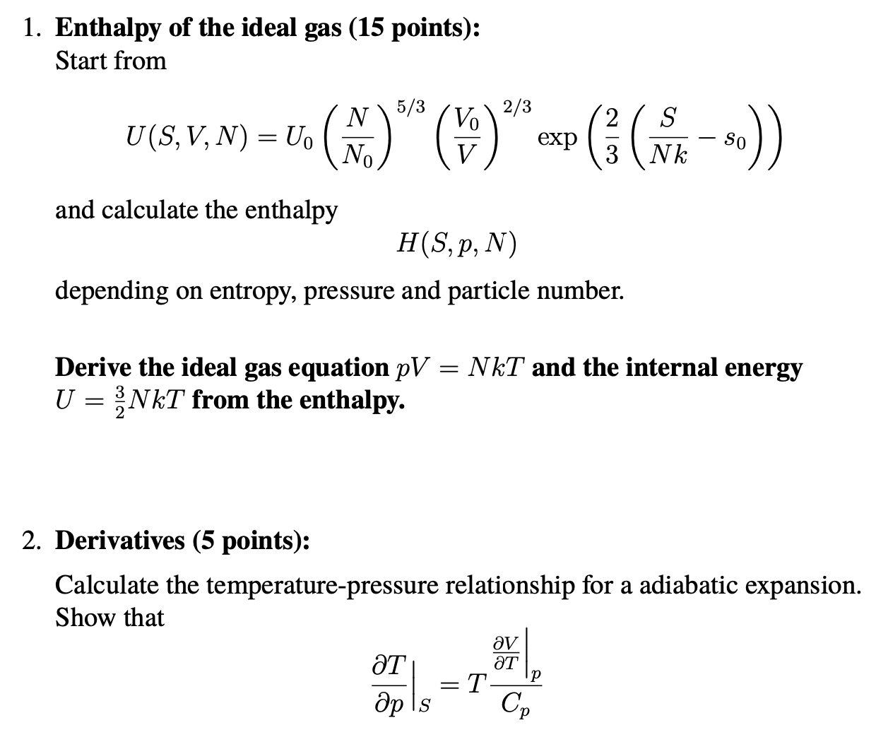 1. Enthalpy of the ideal gas (15 points): Start from N 5/3 Vo ...