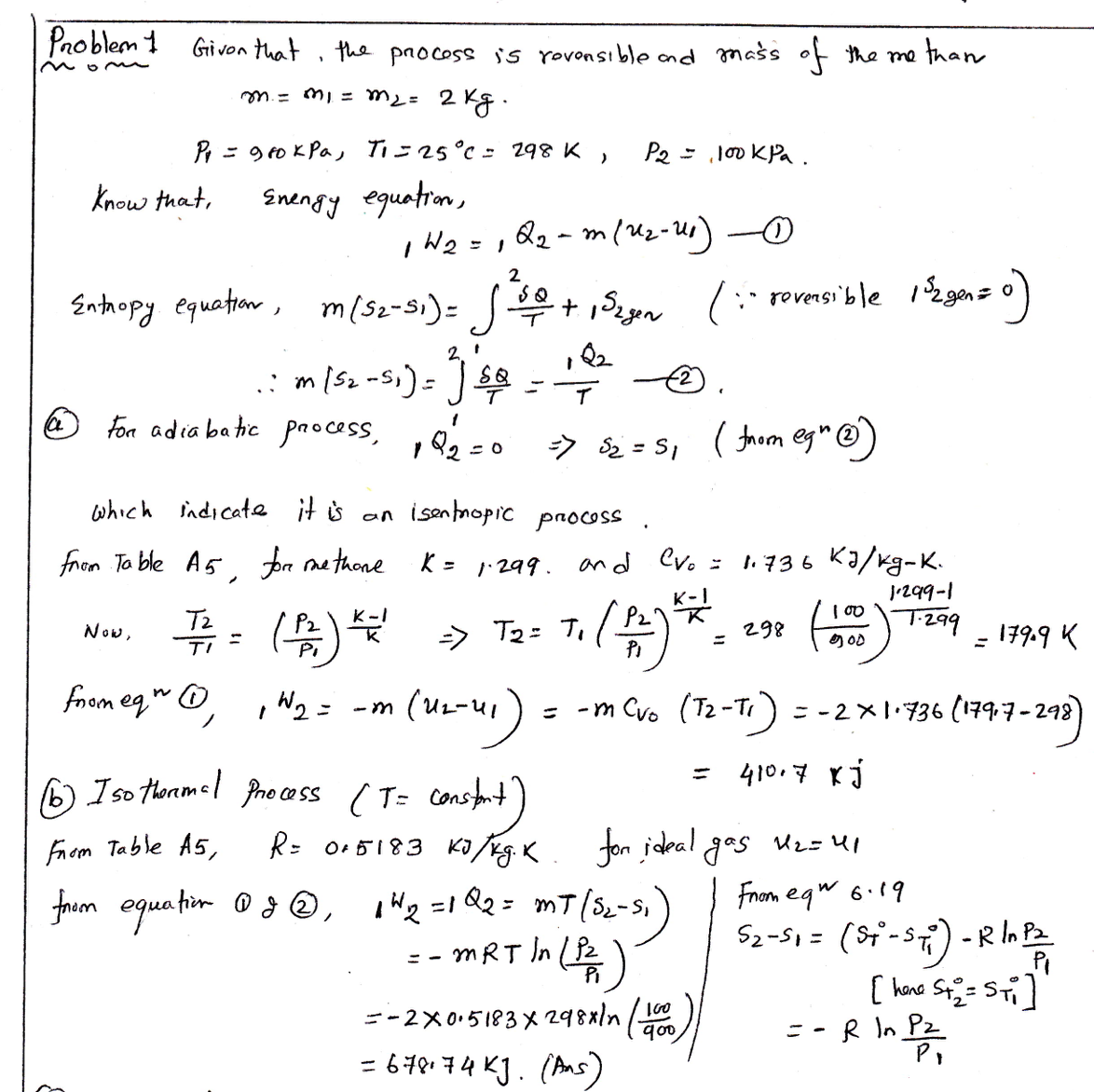 1. A cylinder/piston contains 2 kg of methane gas at 900 kPa and 25...