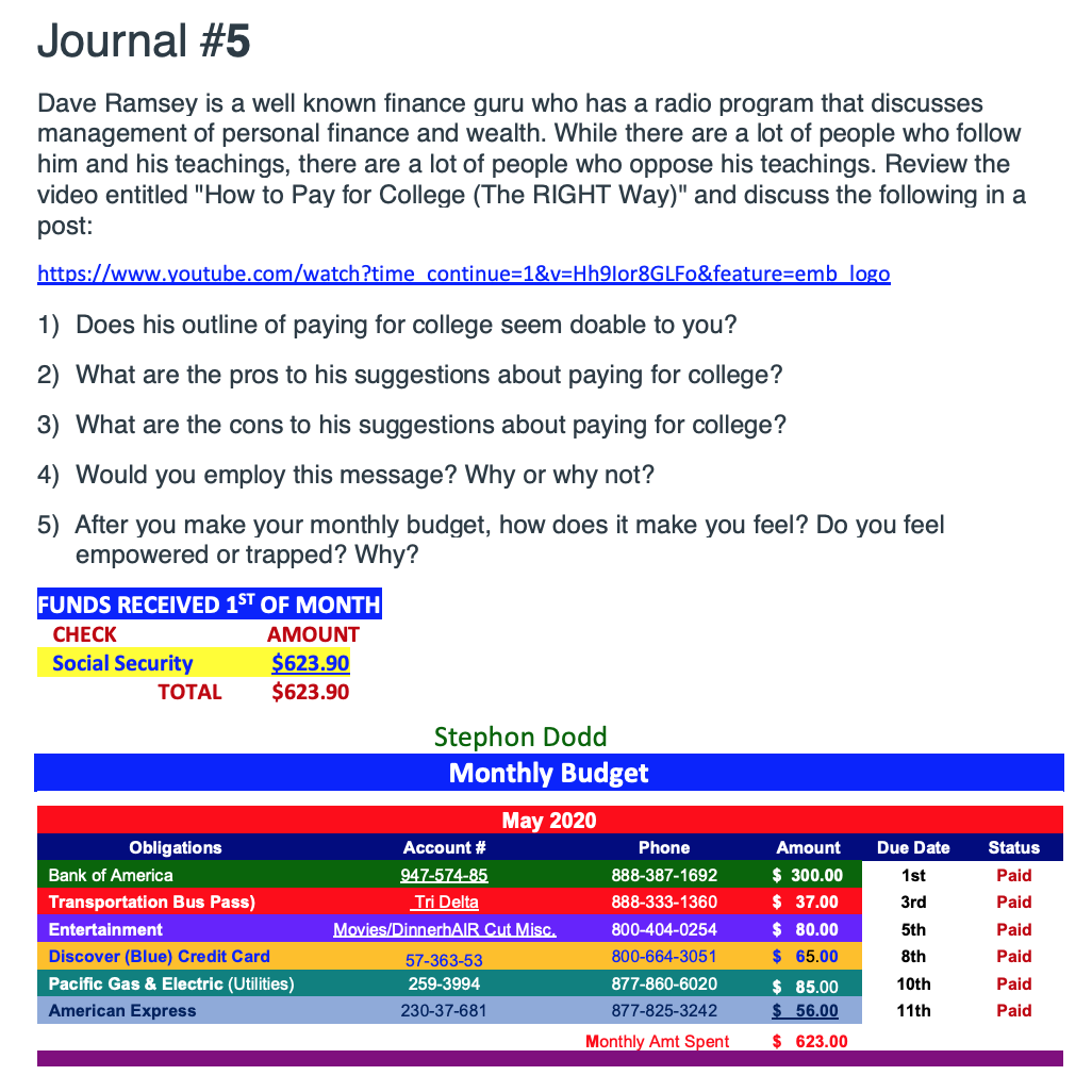 Journal #5 Dave Ramsey is a well known finance guru who has a radi...