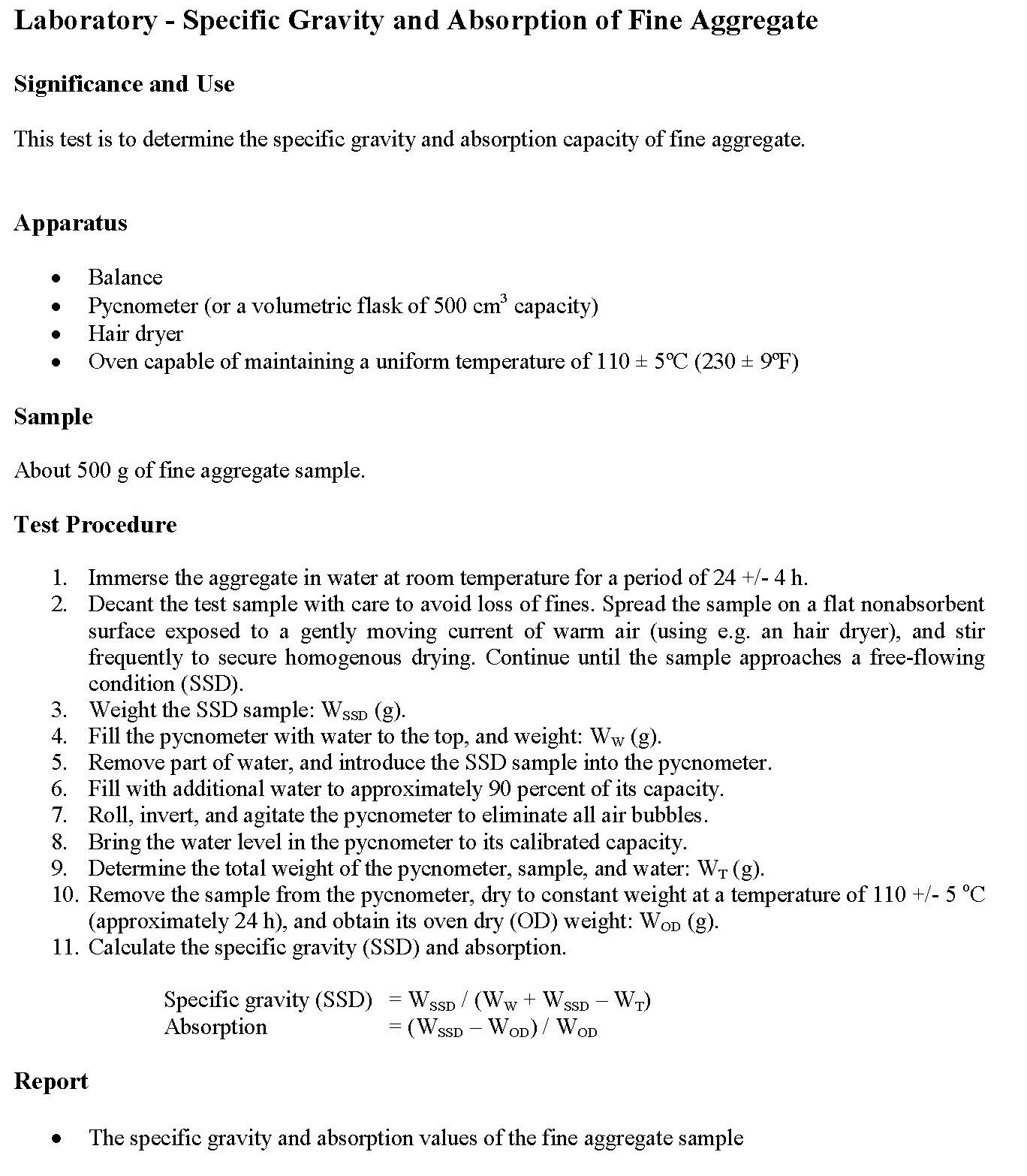 Laboratory - Specific Gravity and Absorption of Fine Aggregate Sign...