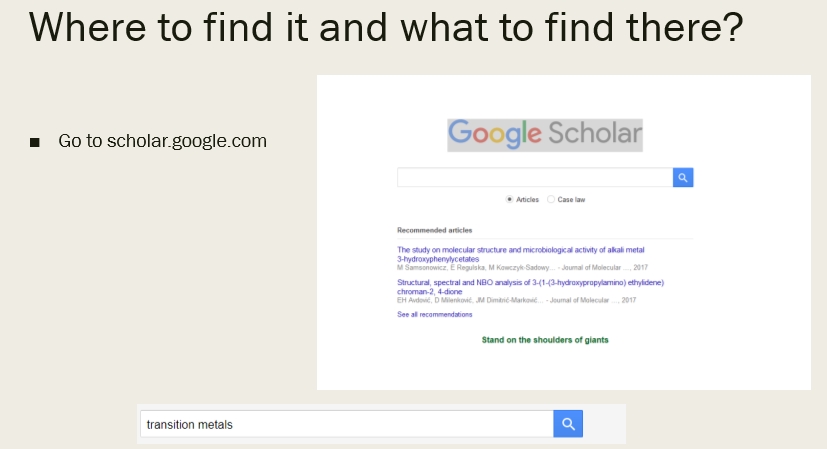 Make a Powerpoint presentation on Google Scholar.