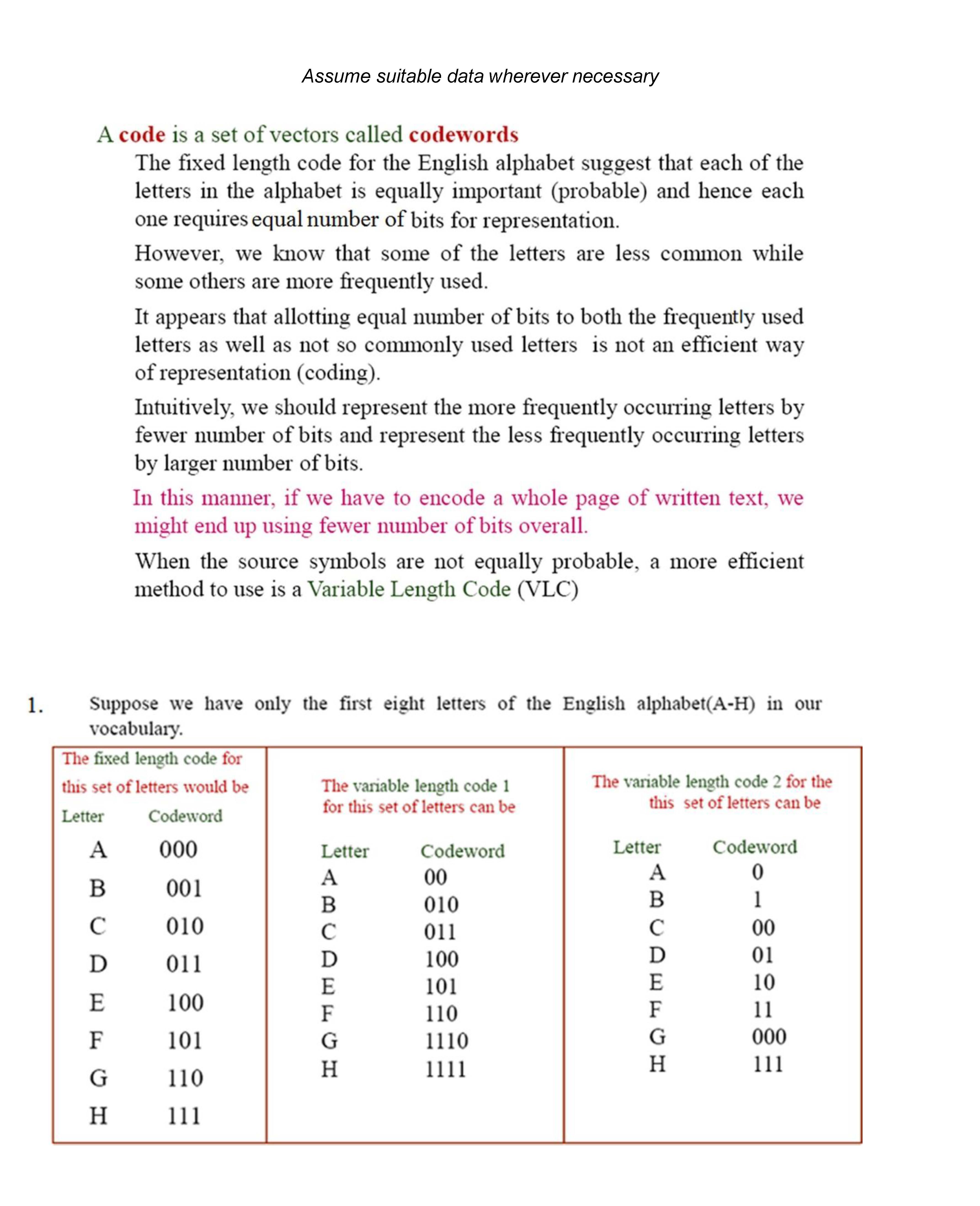 Assume suitable data wherever necessary Acode set of vectors calle...