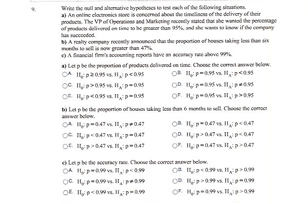 1. For each of the given situations, write the null and alternativ...