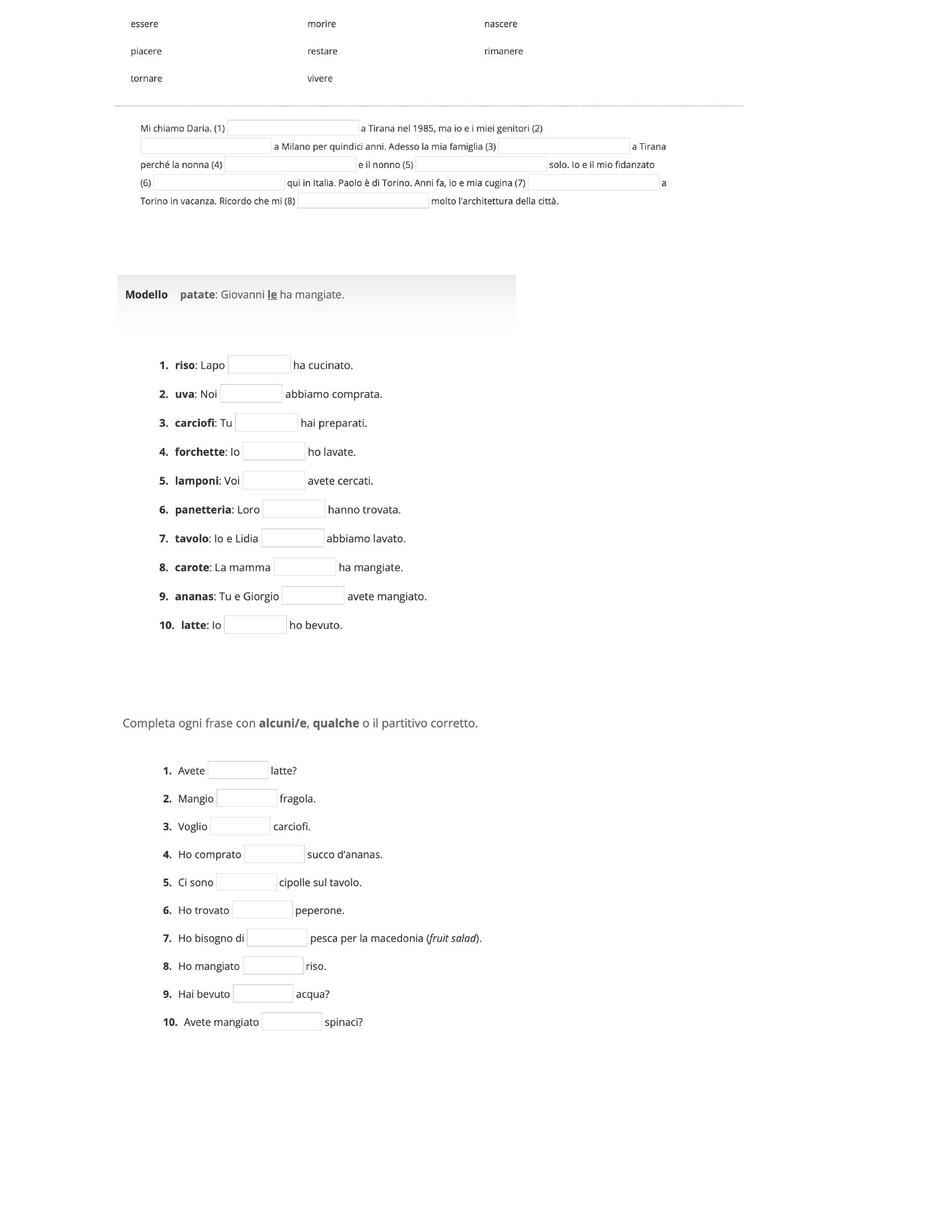 essere morire nascere piacere restare rimanere tornare viver...