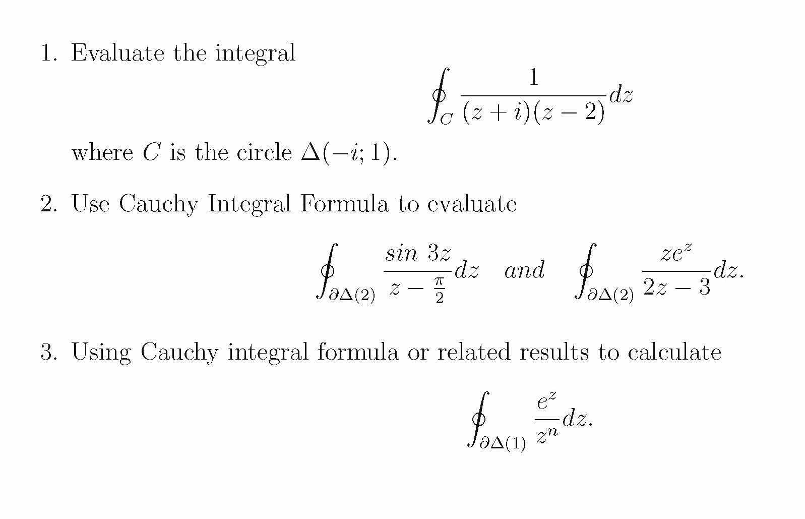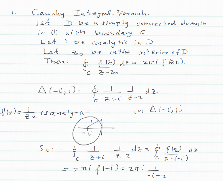 1. Evaluate the integral I C 1 (z + i)(z − 2)dz where C ...