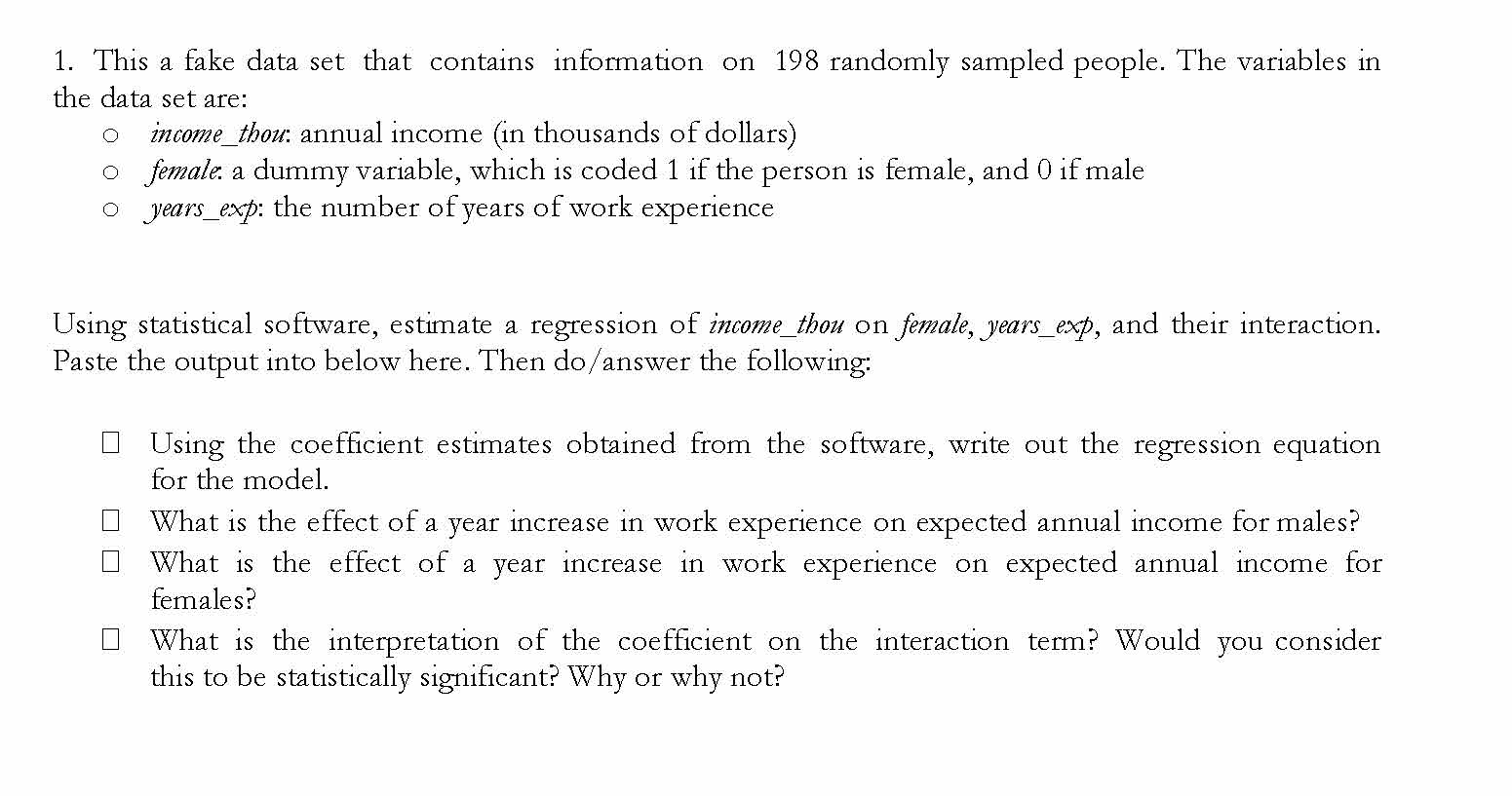 1 1. This a fake data set that contains information on 198 randoml...